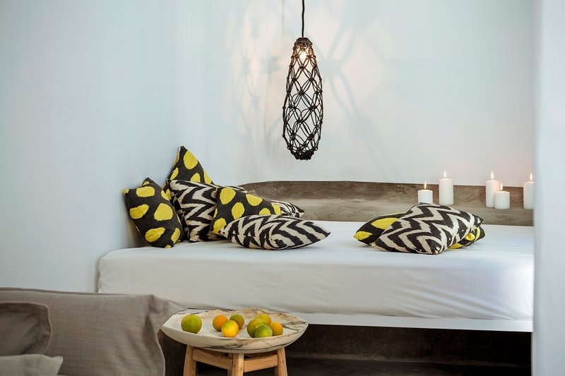 Dans ce petit hôtel de luxe, construit et décoré selon l’architecture traditionnelle des Cyclades, et qui porte si bien son nom: le Bohème. Le service est impeccable, la piscine et son lounge proposent une vue sur Delos, le Chef du restaurant ne travaille que des produits de saison, cultivés ou produits sur l’île, le petit déjeuner à la carte est servi dans la chambre ou dans la véranda privée. La Suite bohémienne propose un jacuzzi extérieur, une grande terrasse avec coin dîner vue directe sur la mer et le coucher du soleil, et surtout, un calme absolu…